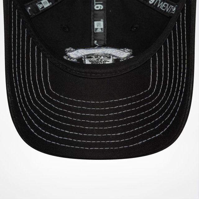 Denna svarta keps har en elegant design med en broderad Manchester United-logotyp i vitt på framsidan, kompletterad med kontrasterande vita sömmar. Den justerbara remmen baktill och en bekväm passform gör den till ett utmärkt val för att visa upp din stolthet över laget.